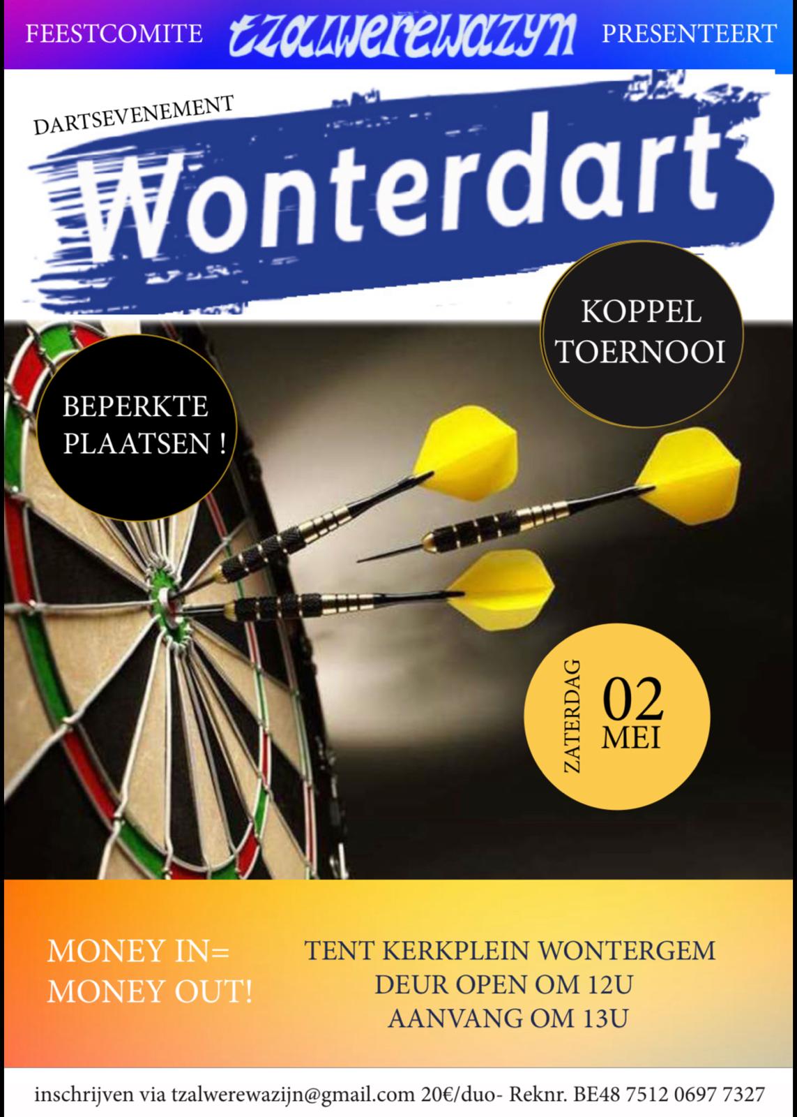 Op 2 mei om 13u vindt Wonterdart, ons jaarlijks darttornooi, opnieuw plaats.